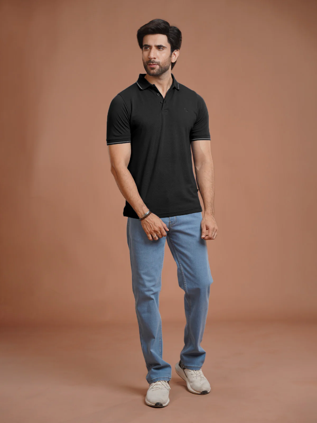 Black Plain Contrast Tipping Half Sleeves Polo T-Shirt (POLO-1004)