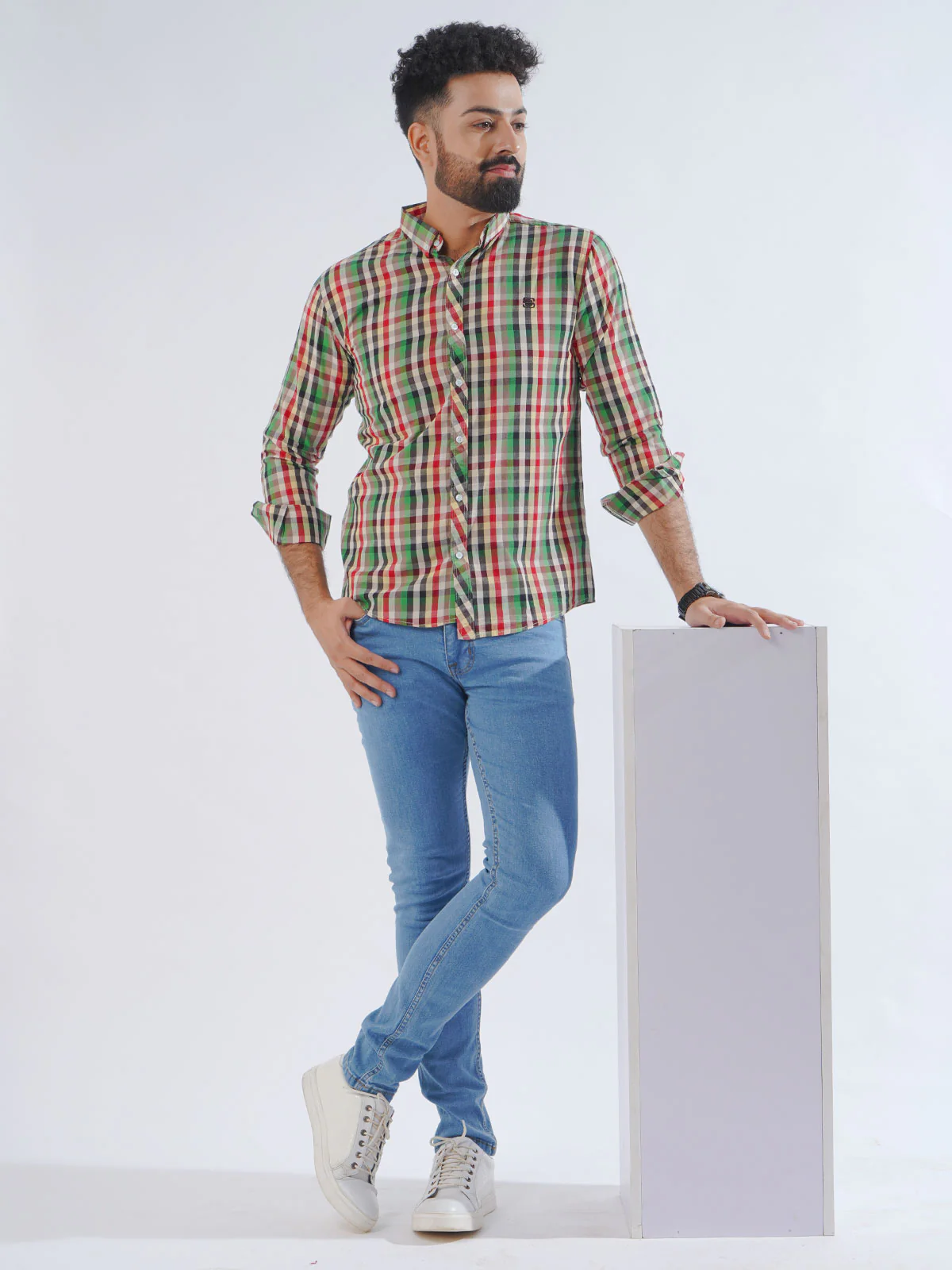 Multi Color Check Button Down Casual Shirt (CSC-201)