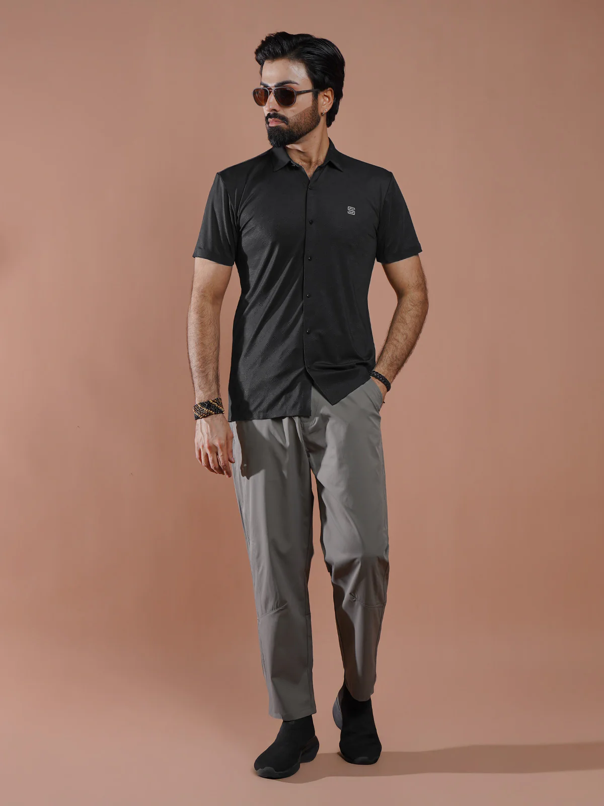 Black Textured Spandex Casual Shirt (CSP-311)