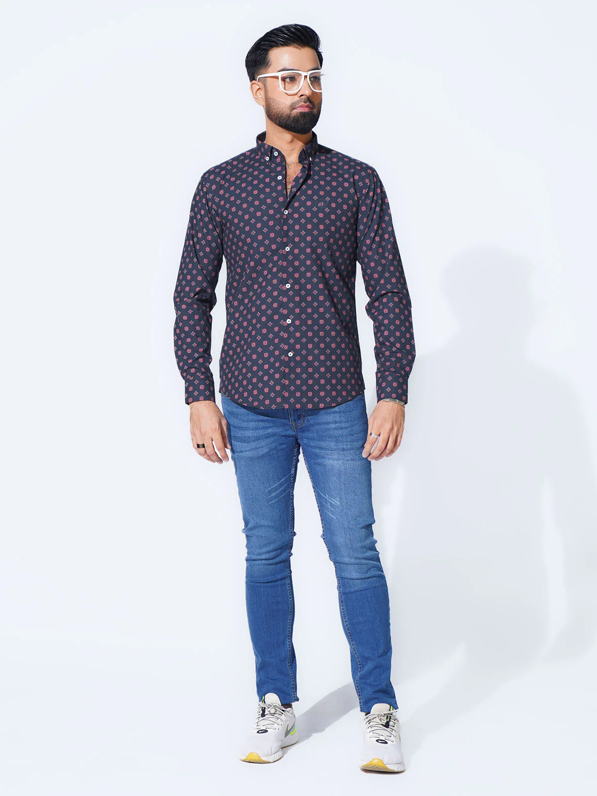 Blue & Red Designer Printed Casual Shirt (CSP-299)