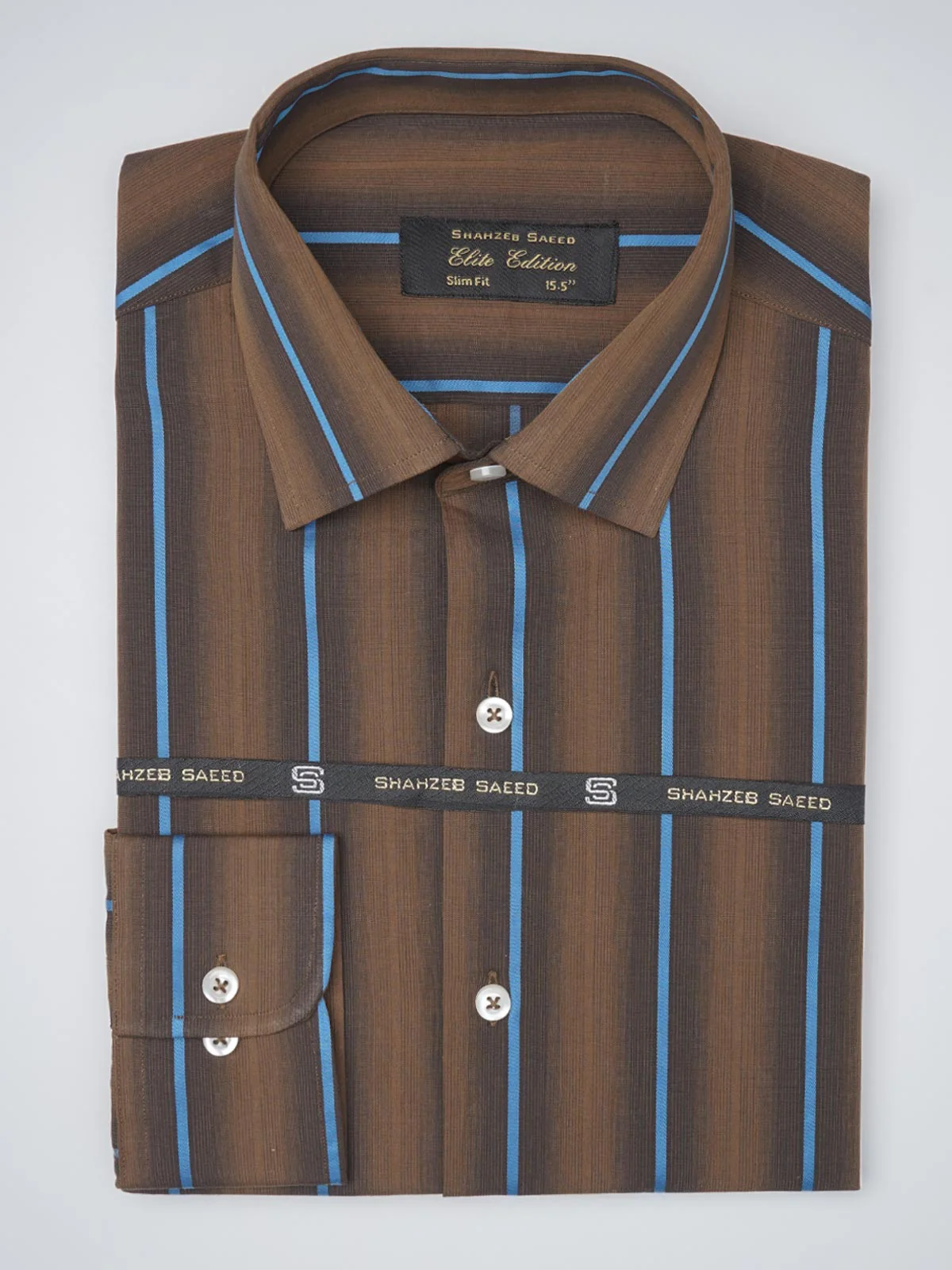 Brown & Multi Color Self Striped, Elite Edition, French Collar Men’s Formal Shirt (FS-1094)