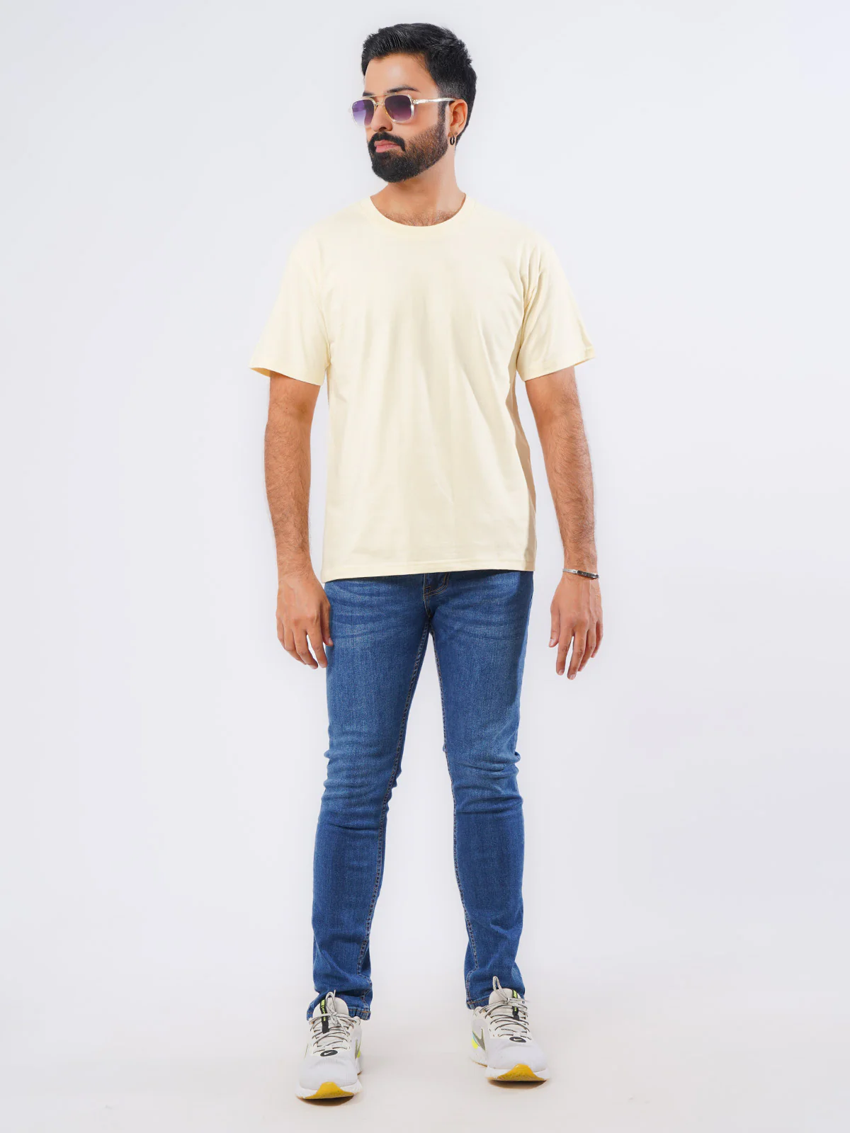 Cream Oversized Men’s Round Neck T-Shirt (TEE-215)
