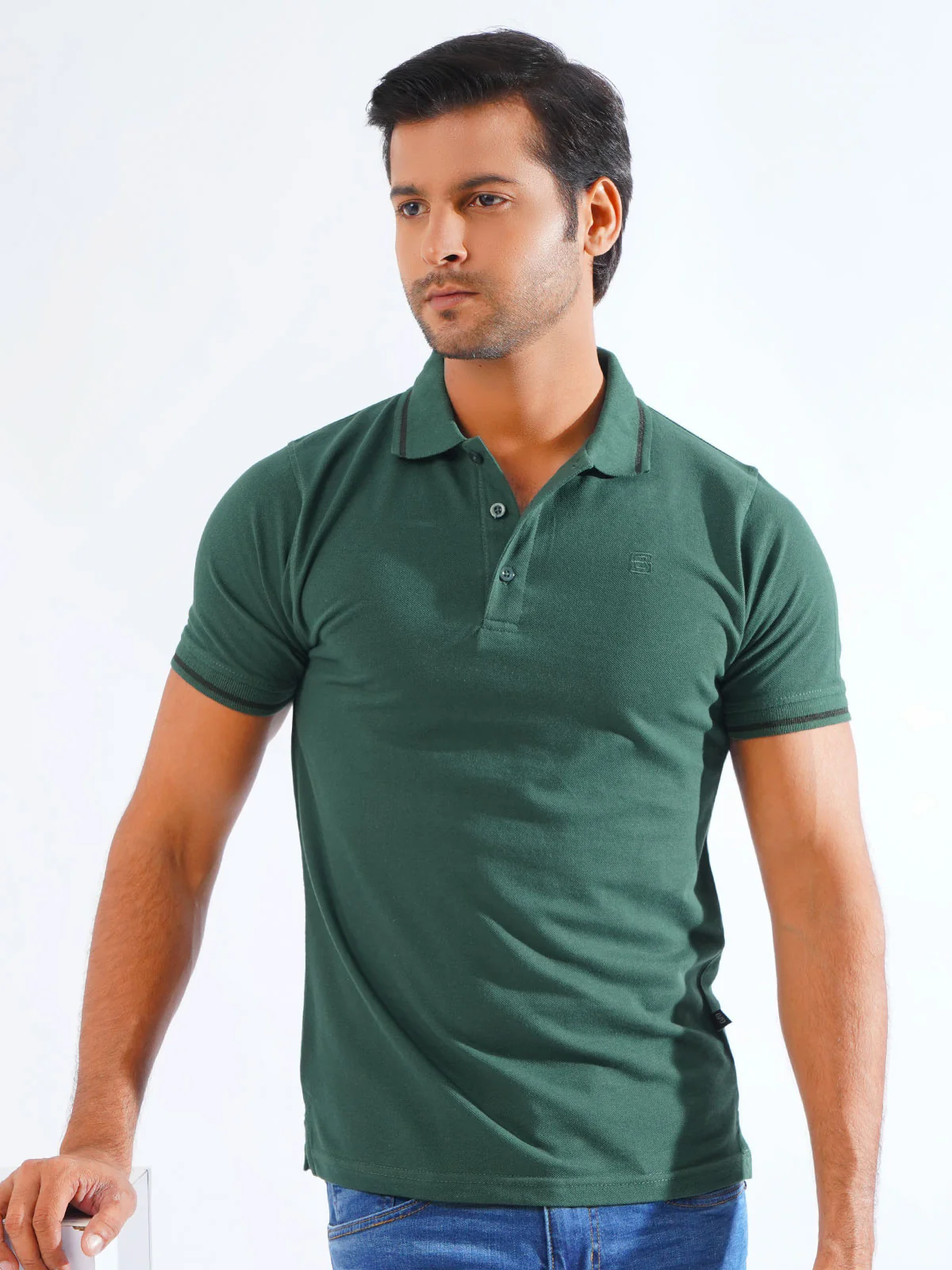 -70%Dark Green Classic Half Sleeves Cotton Polo T-Shirt (POLO-921)—