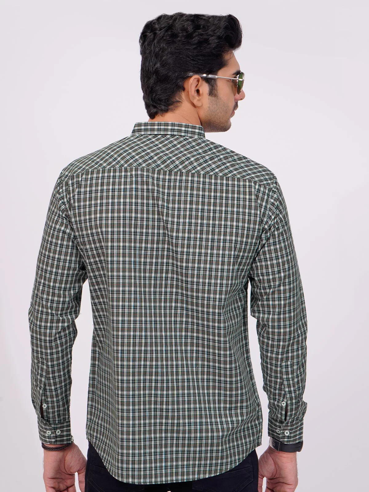 Green & Black Color Check Button Down Casual Shirt (CSC-128)