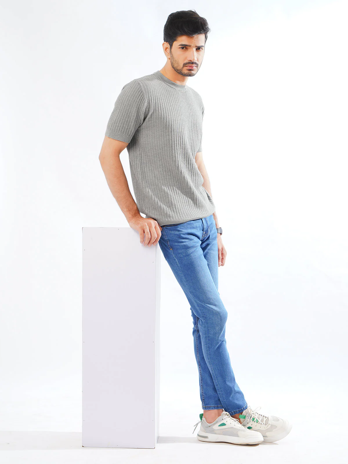 Grey Half Sleeves Men’s Premium Knitted Crew Neck T-Shirt (SKCN-13)