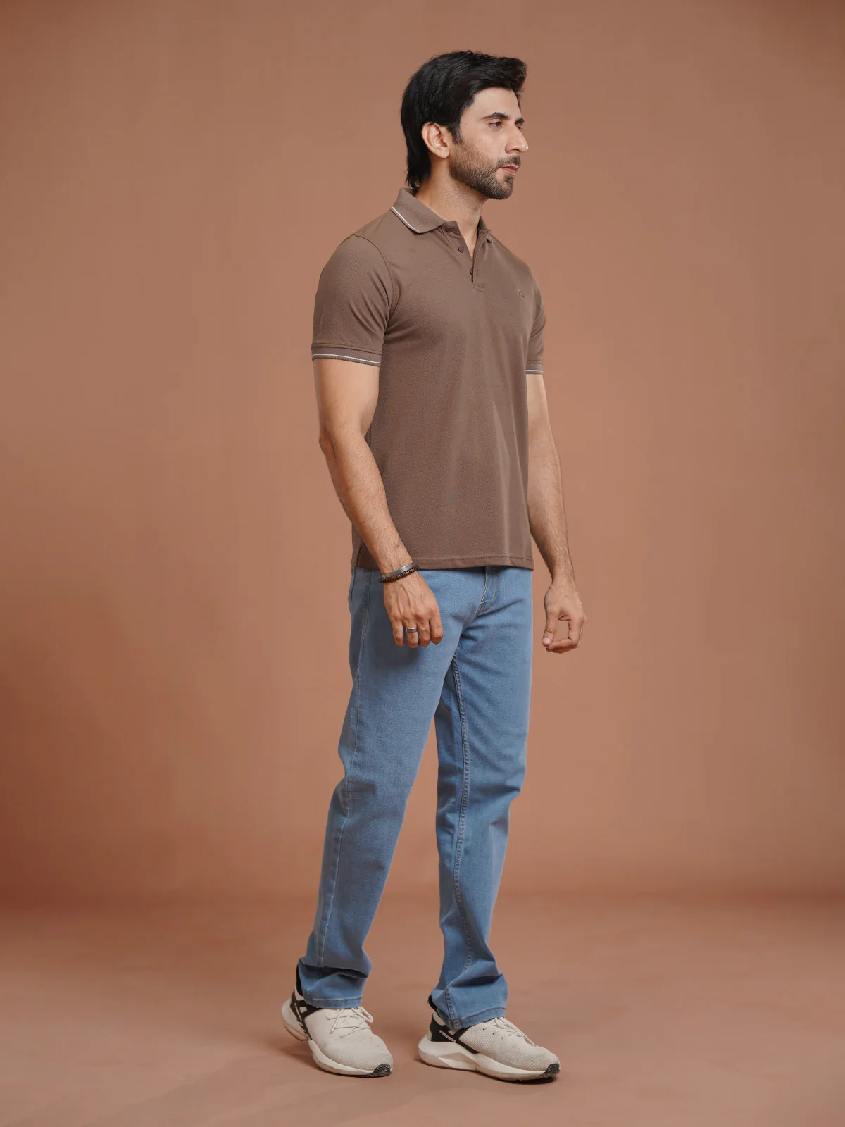 -70%Light Brown Plain Contrast Tipping Half Sleeves Polo T-Shirt (POLO-1003)—