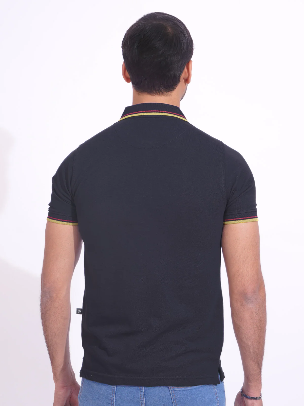 Navy Blue Plain Contrast Tipping Half Sleeves Polo T-Shirt (POLO-687)