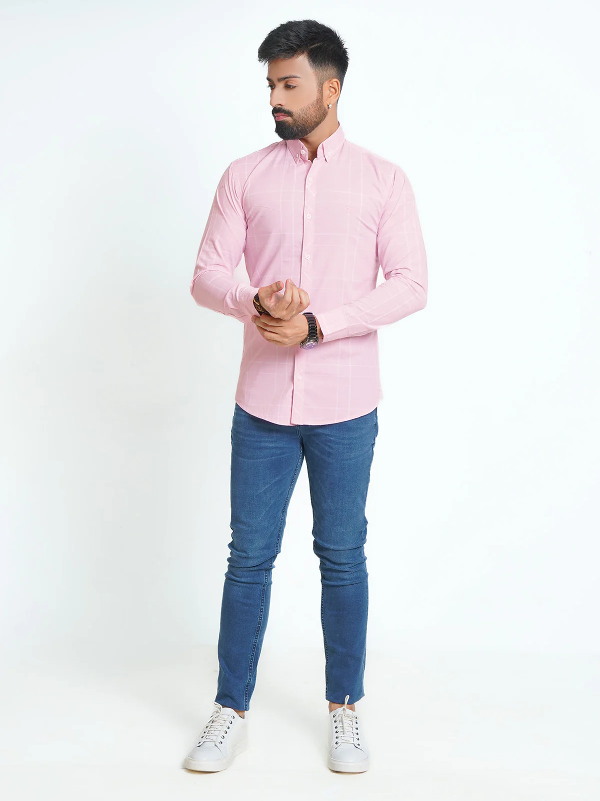 Pink Self Check Button Down Casual Shirt (CSC-068)