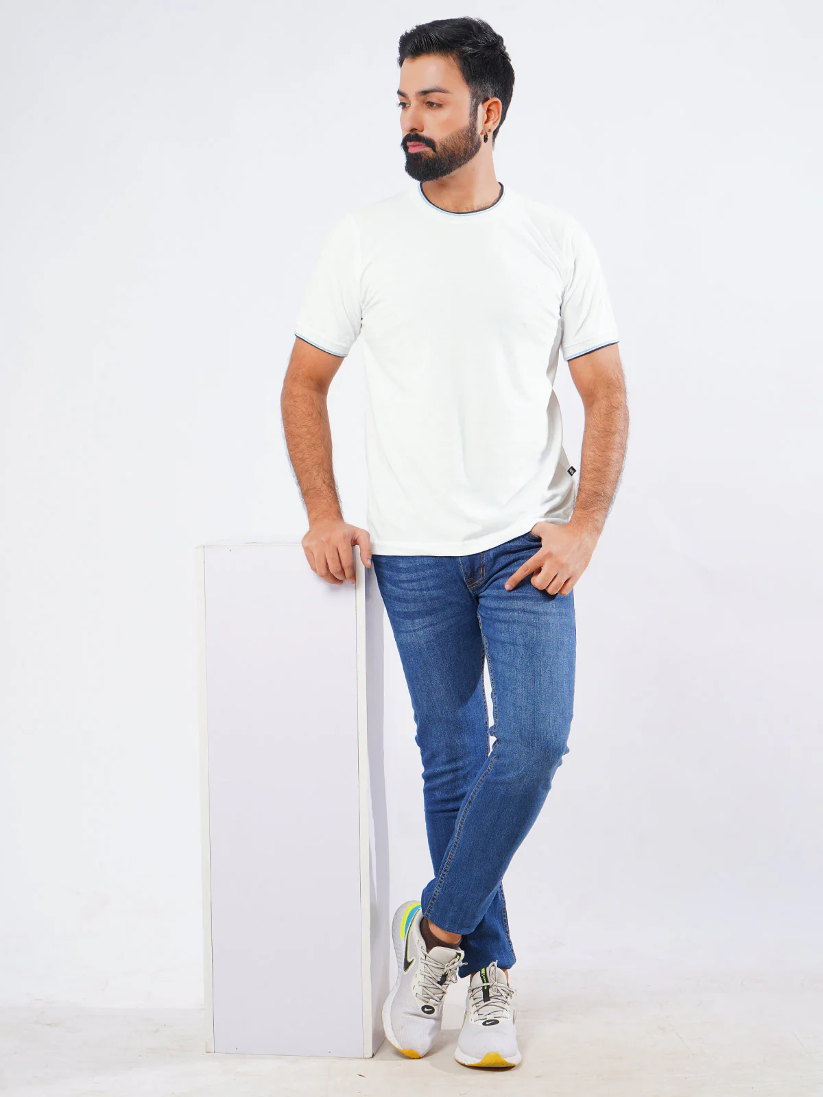 White Half Sleeves Men’s Round Neck T-Shirt (TEE-205)