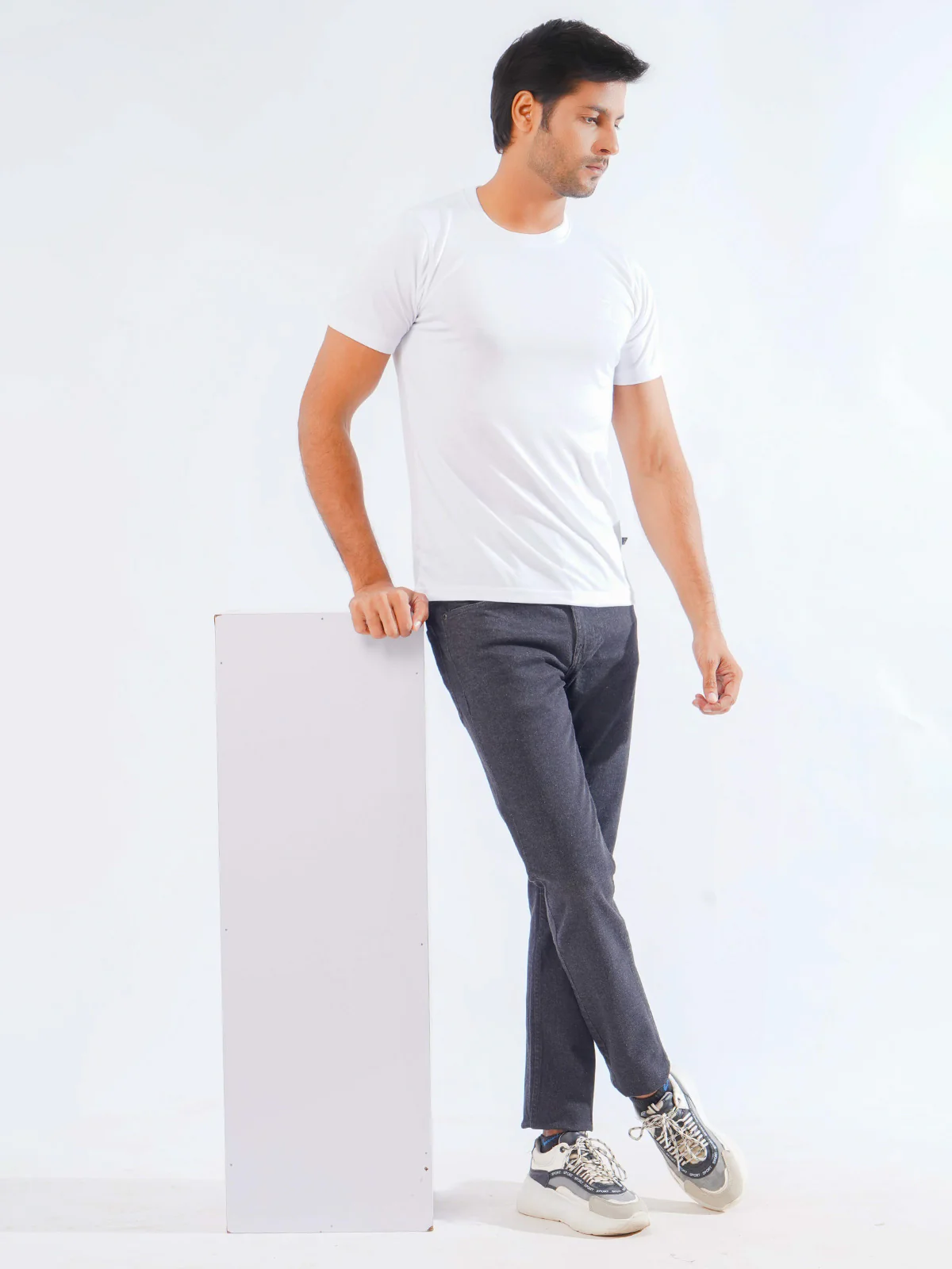White Plain Half Sleeves Men’s Round Neck T-Shirt (TEE-196)